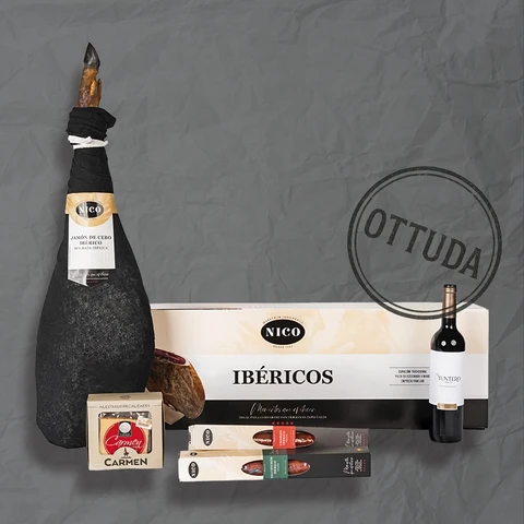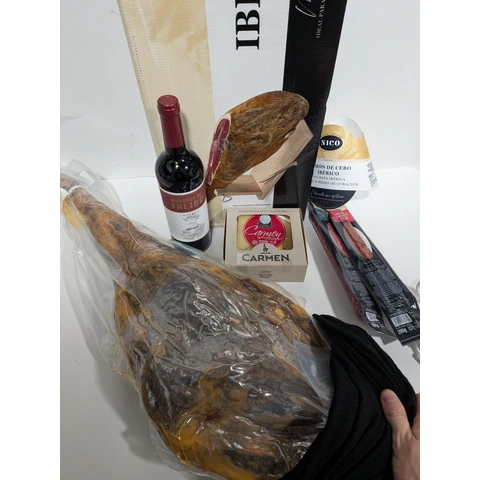 Хамон с насыщенным вкусом, яркой мраморностью и мягким ореховым ароматом. Всё собрано в единый комплект — идеально для подарка или дегустации дома.