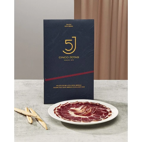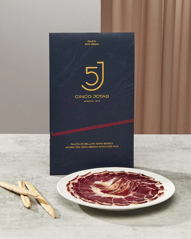 Легендарная палета от Cinco Jotas — насыщенный, глубокий вкус с ореховыми нотами, выраженной сладостью и долгим послевкусием. Более яркая и концентрированная, чем хамон, с характерной текстурой и ароматом.