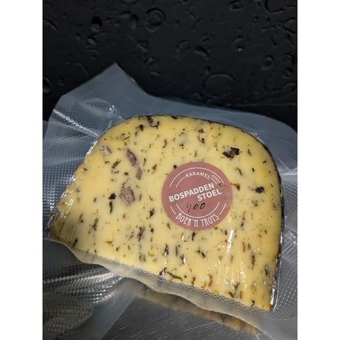 сыр покрыт натуральной коркой с грибами, каштаном и травами — отсюда аромат леса и тёплые ореховые ноты.