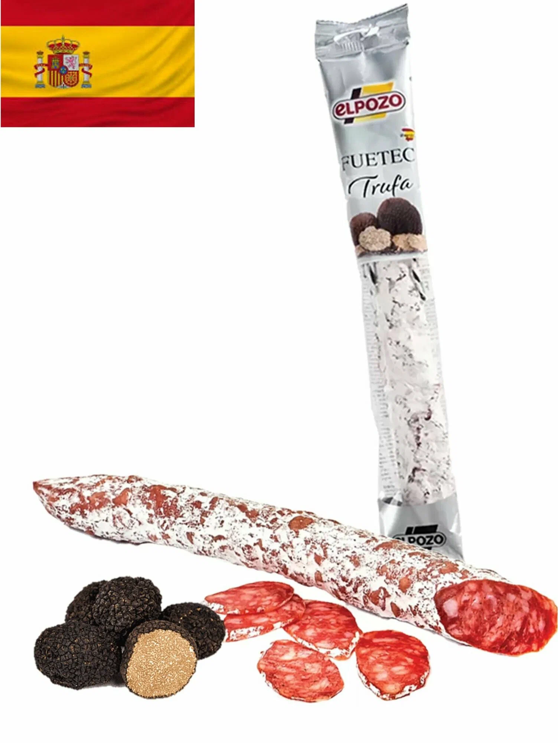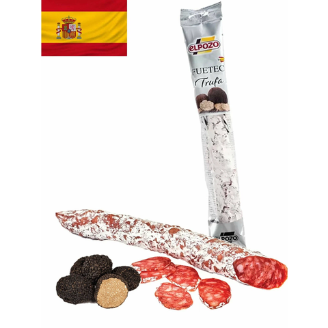 Испанская тонкая колбаса – фуэт, с добавлением ароматного чёрного трюфеля. Идеальное сочетание нежной иберийской свинины и утончённого грибного акцента.